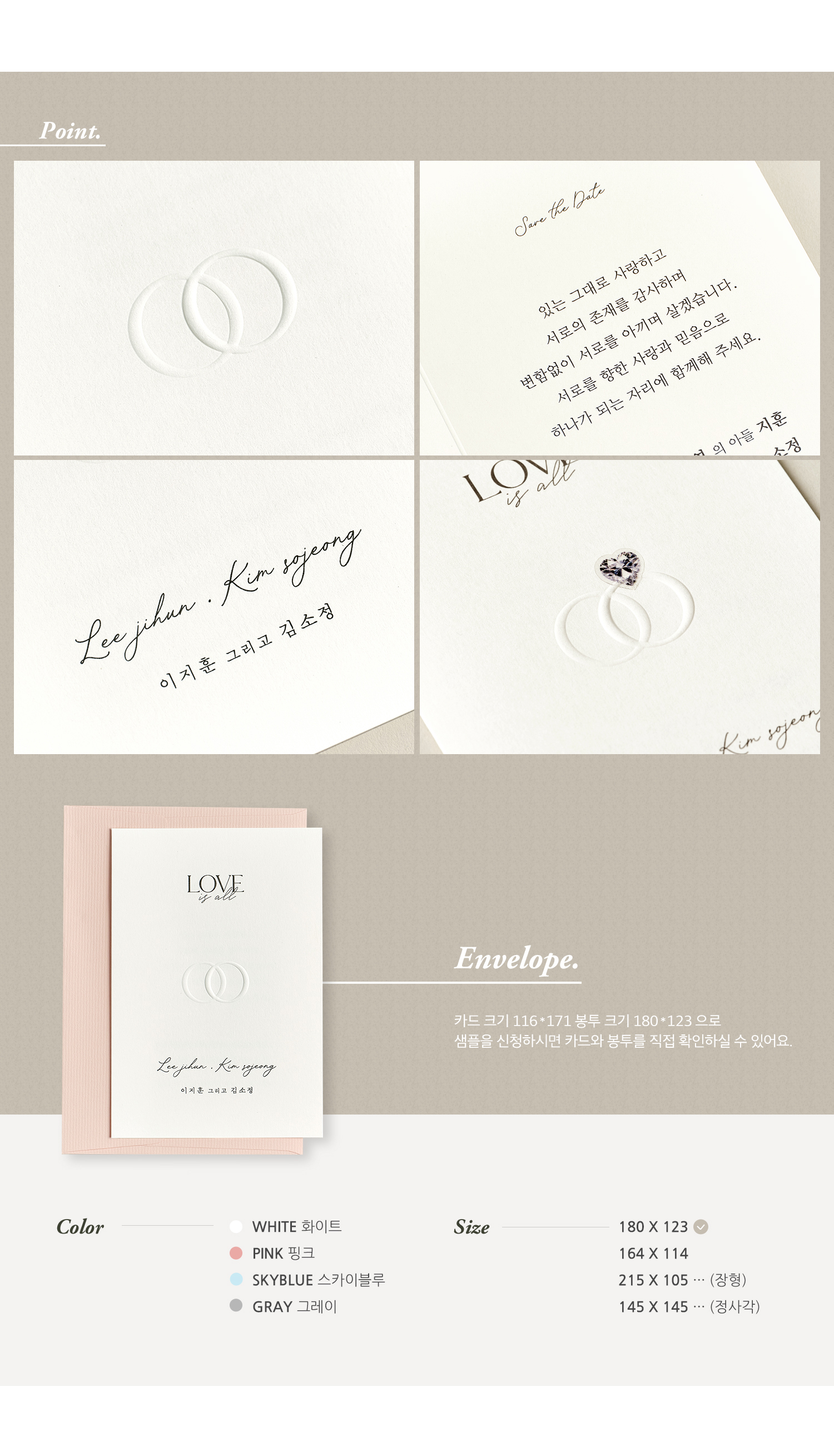 샘플, 제작, 추가 주문 별로 제작 공정에 따른 색상이나 용지의 미세한 차이가 있을 수 있어요.
