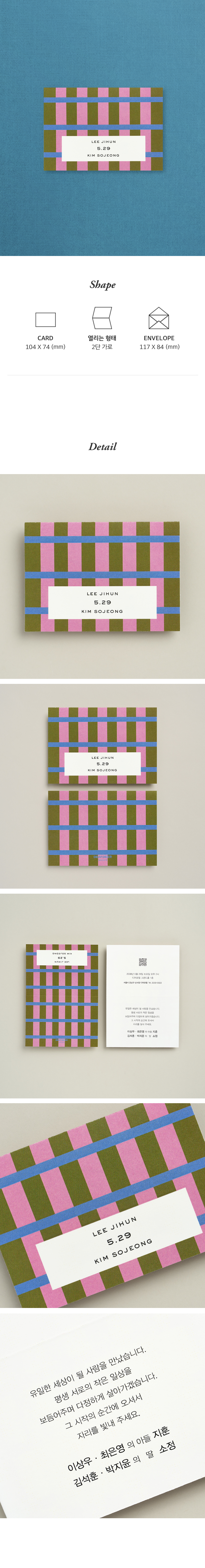 6. 청첩장은 앞면을 더 크게 제작하기 때문에 접었을 때 뒷면이 더 짧게 보여요.