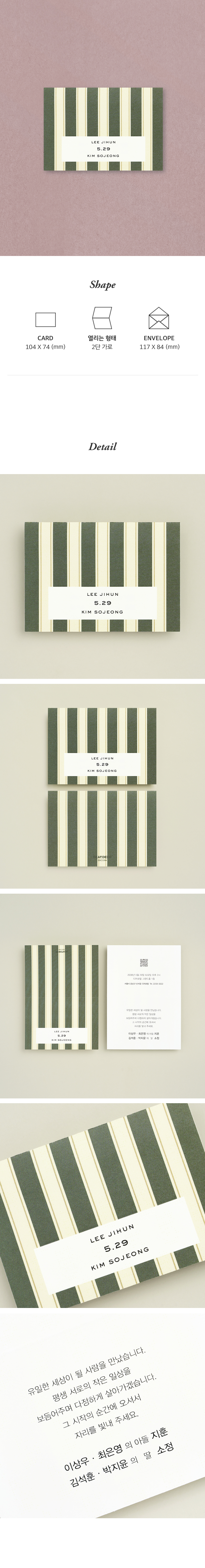 6. 청첩장은 앞면을 더 크게 제작하기 때문에 접었을 때 뒷면이 더 짧게 보여요.