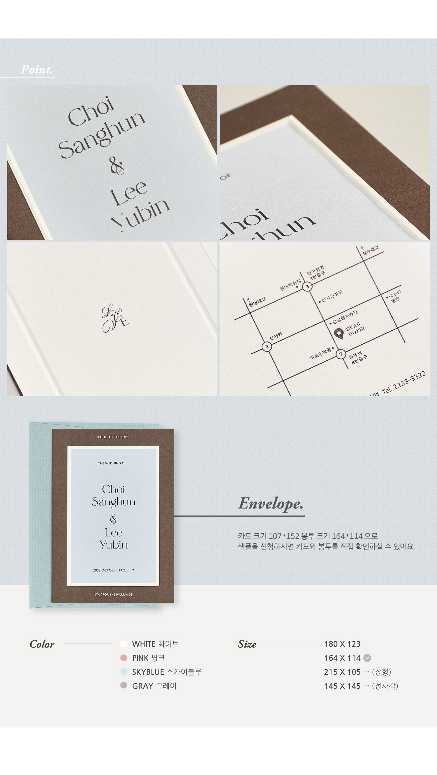 6. 청첩장은 앞면을 더 크게 제작하기 때문에 접었을 때 뒷면이 더 짧게 보여요.