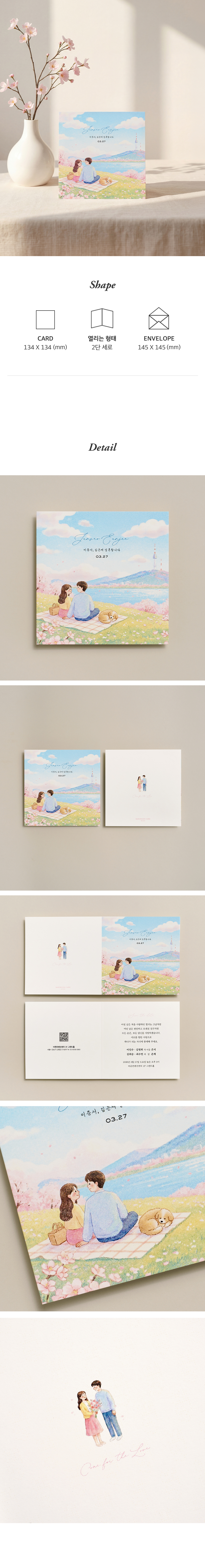6. 청첩장은 앞면을 더 크게 제작하기 때문에 접었을 때 뒷면이 더 짧게 보여요.